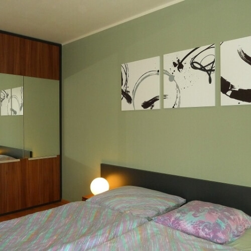 Dle požadavků klienta byl vytvořen návrh na kompletní dokončení interiéru. Koncepce je založena na výrazných kontrastech a minimalistickém pojetí. V obývacím pokoji, ložnici i chodbě je veškerý nábytek zhotoven na míru dle předcházejícího návrhu. V celém bytě jsou osazena nová svítidla a drobné dekorace.