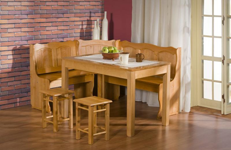 V ceně je pouze rohová lavice, bez stolu a taburetů.Dřevěná rohová lavice bez polstrování. V bočních dílech naleznete úložný prostor na úschovu nezbytností potřebných v kuchyni. Produkt je vyroben z masivu olše, který lze mořit v mnoha odstínech od světlého až po tmavý.