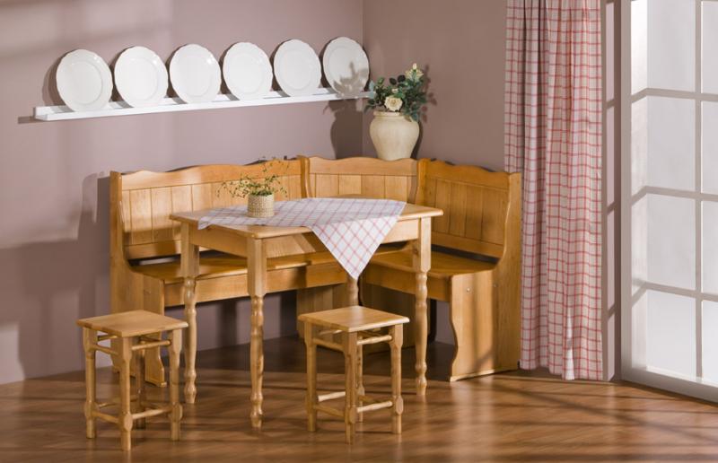 V ceně je pouze rohová lavice, bez stolu a taburetů.Máte malou kuchyň a potřebujete zde využít veškerý prostor? Rohová lavice Jordán, poskytne několik míst k sezení, kterých byste pouze kuchyňskými židlemi nedosáhli. Lavice je bez polstrování, což se také projeví na ceně produktu. V ceně je pouze lavice bez stolu a taburetů, ty je možno v naší nabídce dokoupit. Na výběr je mnoho barevných provedení od světlého až po tmavý odstín wenge. Produkt je kompletně vyroben z masivu olše, použitý materiál lze mořit různými barevnými odstíny, aby si zákazník vybral tu vhodnou variantu do svého interiéru. Jako konečná úprava je použit bezbarvý, zdravotně nezávadný lak. Pod sedáky naleznete úložný prostor, který jistě využijete. Možnost sestavení levého či pravého rohu až při montáži.
