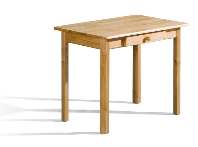 Jednoduchý jídelní stůl se zásuvkou na drobnosti. Šuplík je opatřen kulatou úchytkou ve stejném barevném provedení. Plocha stolu 100x60 cm je dostatečně prostorná pro více osob. Doporučujeme dokoupit z naší nabídky jídelní židle či rohovou lavici, které jsou dimenzovány ve stejném stylu. Produkt je vyroben z kvalitního masivu olše, který lze také mořit mnoha druhy odstínů z přiloženého vzorníku. Výběr je ze světlých i tmavých provedení, zákazník si tak vybere vhodnou variantu do svého interiéru. Pro vyšší ochranu je použit bezbarvý lak, který zároveň prodlouží životnost stolu.