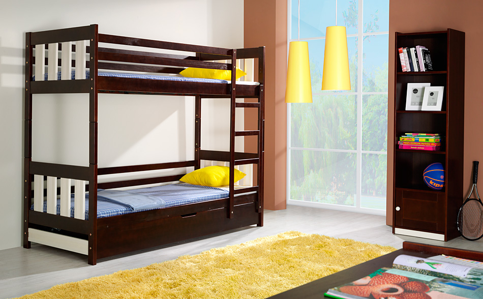 Sektorový dětský pokoj z masivu borovice. Použitý materiál na vás bude působit útulným a příjemným dojmem. Za úžasnou cenu si můžete pořídit dřevěný pokoj s několika praktickými komponenty. Pokud neholdujete často používanému laminu, bude tento produkt ten pravý pro váše děti. Součástí pokoje je postel Grizelda, kterou lze zakoupit také samostatně. Tato variabilní postel s úložným prostorem a možností rozložení palandy na dvě samostatné lůžka. Přístup k úložnému prostoru je přes spodní lůžko (vyklopení roštu). Samozřejmostí jsou i rošty na obou lůžcích. Kvalitní borovicové dřevo zajistí nosnost každého lůžka do 70 kg. Dalšími komponenty tvořící sestavu jsou policový regál na uložení knih či učebnic a noční stolek.
