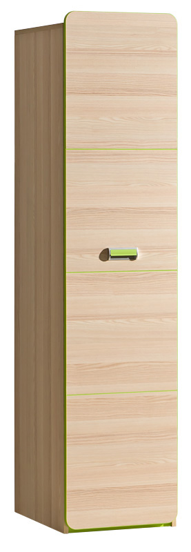 Korpus i dveře jsou v přírodním dekoru jasan, dveře jsou navíc opatřeny zeleným prvkem, který tak dělá šatní skříň zajímavou. Produkt je vyroben z vysoce tvrdého materiálu, a je tedy dokonale vhodný do dětského pokoje. LTD je navíc i materiál, který nevyžaduje složitou povrchovou údržbu, stačí jej jednoduše setřít navlhčeným hadříkem.