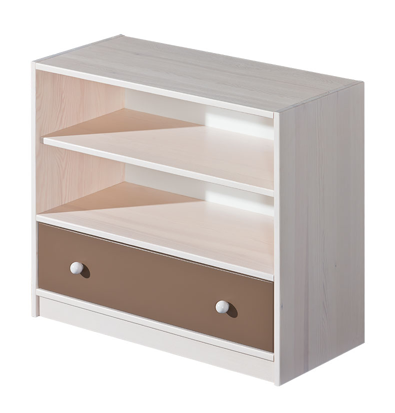 Komoda je funkční a maximálně praktická věc. Výjimkou není ani tato komoda do dětského pokoje vyrobená z masivu borovice. Horní desku využijete k vystavení dekorací, dvě prostorné police využijete k uložení oblíbených deskových her a do horního šuplíku snadno naskládáte drobné hračky. Potěší Vás i velký výběr barevných variant moření.Rozměry:šířka: 88 cmvýška: 77 cmhloubka: 40 cm