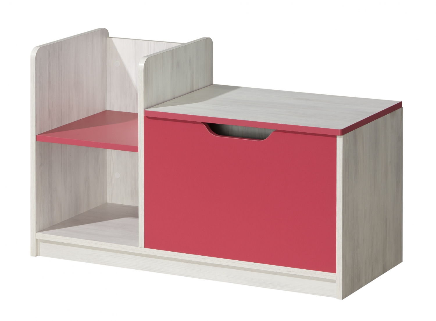 Stále vaše děti nemají dostatek úložných prostor v pokojíčku? Pořiďte jim dětskou kombinovanou truhlu Noly 3 na hračky. Na výběr máte ze dvou dvoubarevných provedení, kde korpus je vždy z norské borovice v kontrastu s malinovou či modrou barvou. Dětská truhla se skládá z truhly a police.
