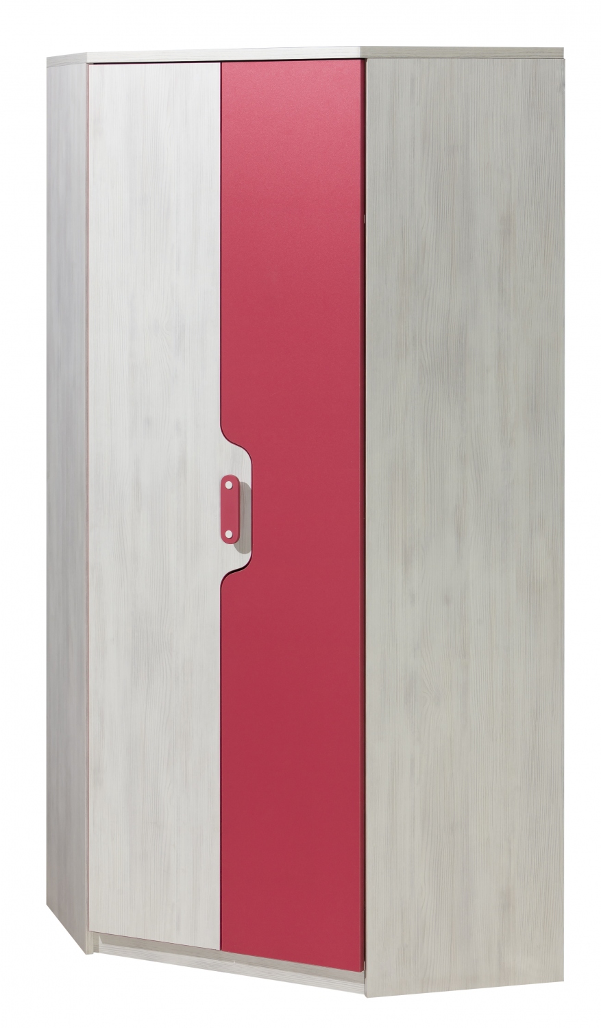 Nemá vaše dítě dostatek úložného prostoru a bojujete o každý kousek? Pak pro vás máme řešení v podobě rohové skříně Noly 11. Efektivně využijete volné místo a získáte tak další prostory pro ukládání oblečení či hraček. Korpus je vždy v dekoru norské borovice s výraznými prvky v malinové nebo modré barvě. Díky zkoseným hranám může na skříň navazovat další nábytek.