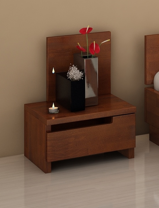 Zajímavě řešený noční stolek z masivu buku vyniká moderním designem založeném na čistých asymetrických liniích. Masivní konstrukce dodává produktu pevnost, stabilitu a dlouhou životnost, povrchové ošetření dřeva několikavrstvým ochranným ekologickým lakem brání oděru.