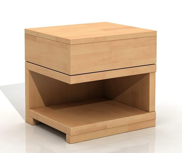 Noční stolek s netradičně pojatou horní zásuvkou a s otevřenou policí, ideální k umístění knih. Čistý moderní design nejlépe vynikne v minimalisticky zařízené ložnici. Kvalitní použitý materiál, tvrdý masiv buku, dodává produktu mimořádnou pevnost, vysokou stabilitu a dlouhou životnost.