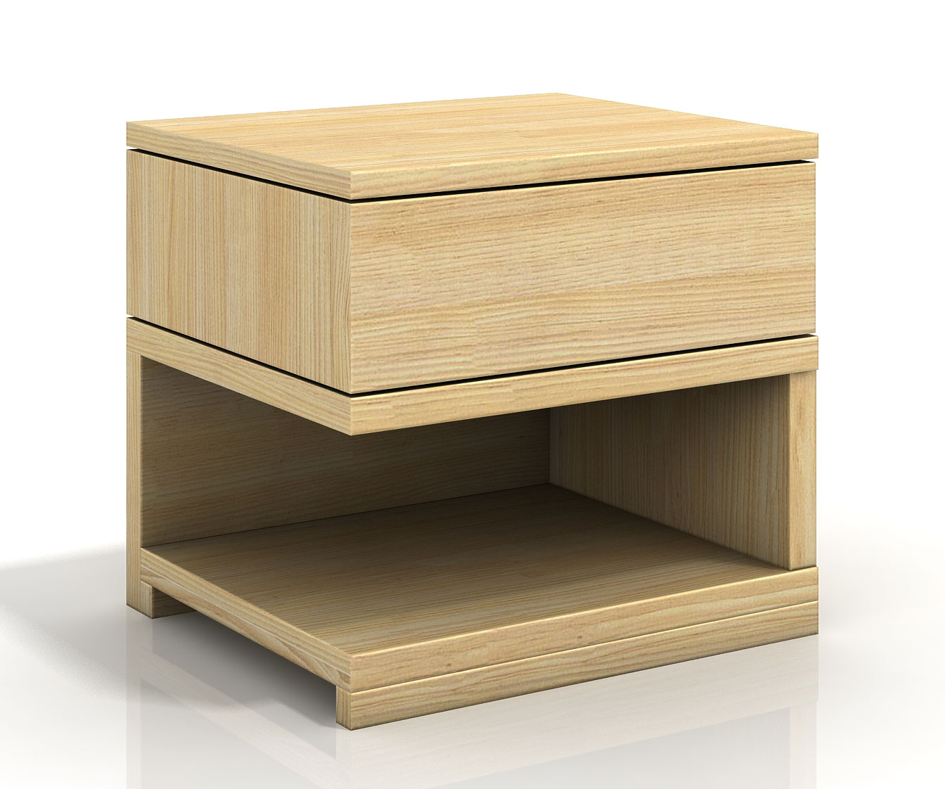 Minimalistický noční stolek se zajímavě konstruovanou horní zásuvkou a otevřenou policí poskytující místo například pro umístění knížek vynikne nejlépe v moderním interiéru ložnice. Bytelná konstrukce z odolného borovicového dřeva činí produkt pevným a stabilním. Kvalitní řemeslné zpracování pečlivě vybraných materiálů garantuje jeho dlouhou životnost.