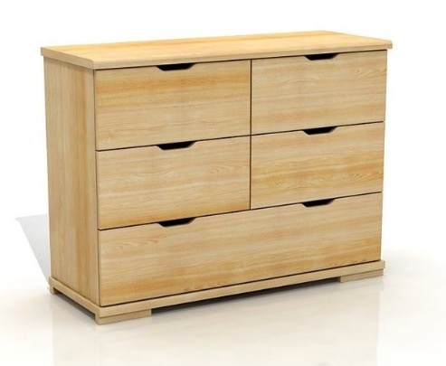 Pořízení šuplíkové komody je vhodný způsob rozšíření úložných prostor ve vaší ložnice. Praktické využití však jistě nalezne také v dětském pokoji, předsíni nebo pokoji pro hosty. Do pěti zásuvek s praktickými výřezy pro snadnou manipulaci lze přehledně naskládat oblečení, bytový textil nebo hračky. Komoda je vyrobena z výběrového masivu borovice.