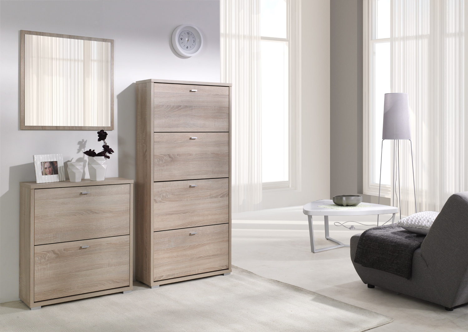 Menší botník disponuje dvěma výklopnými sektory, větší botník dokonce čtyřmi výklopnými sektory. U menšího botníku je možné využít také horní desku k odkládání drobností, jako jsou klíče, sluneční brýle nebo k vystavení dekorací. Úchytky dvířek jsou decentní a skvěle ladí s celkovým jednoduchým designem.
