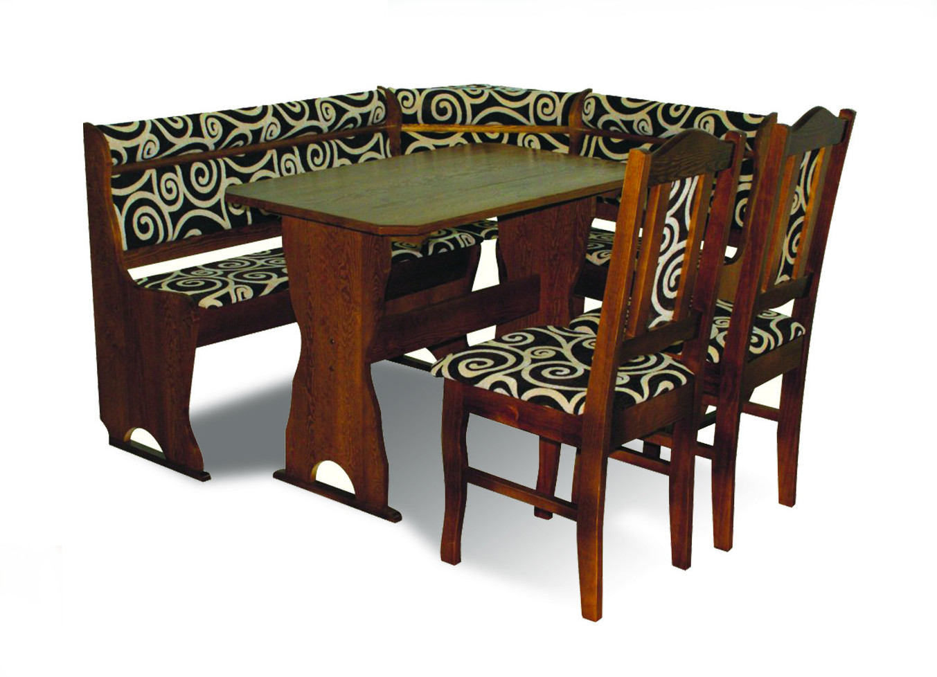 Stylová kuchyňská rohová sestava složená ze stolu, rohové lavice a dvou židlí působí velmi elegantním dojmem. Kvalitní polstrování lavice a židlí zaručuje vysoký komfort při sezení. Lavice je variabilní, pi montáži si sami zvolíte, zda bude umístěna vlevo či vpravo. Rohový jídelní set se vyrábí v několika variantách barevného moření dřeva. V naší nabídce naleznete rovněž velký výběr potahových látek pro čalounění.