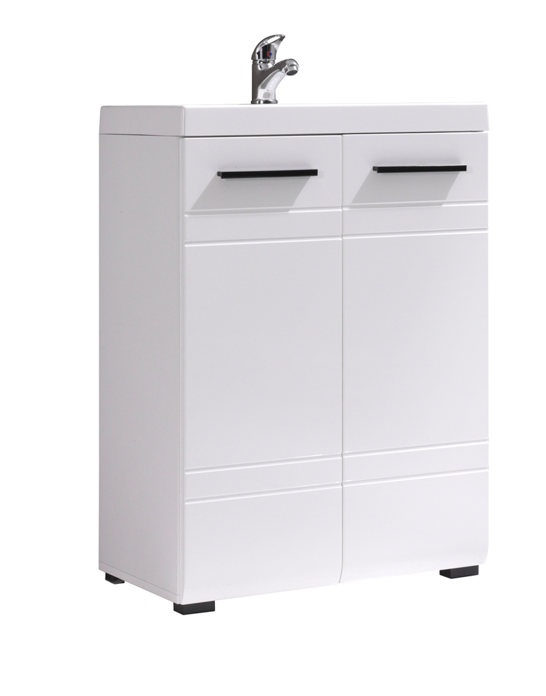 Ať chceme nebo ne, trávíme v koupelně dost času denně na to, abychom věnovali dostatečnou pozornost jejímu vybavení. Skříňka Velena s jednou vloženou policí řeší efektivně využití prostoru pod umyvadlem, do kterého se s její pomocí vměstná celá řada například čisticích prostředků. Univerzální bílé zbarvení s černými úchytkami a čtyřmi nožkami z PVC, dovoluje umístění v jakkoliv barevně pojaté koupelně.
