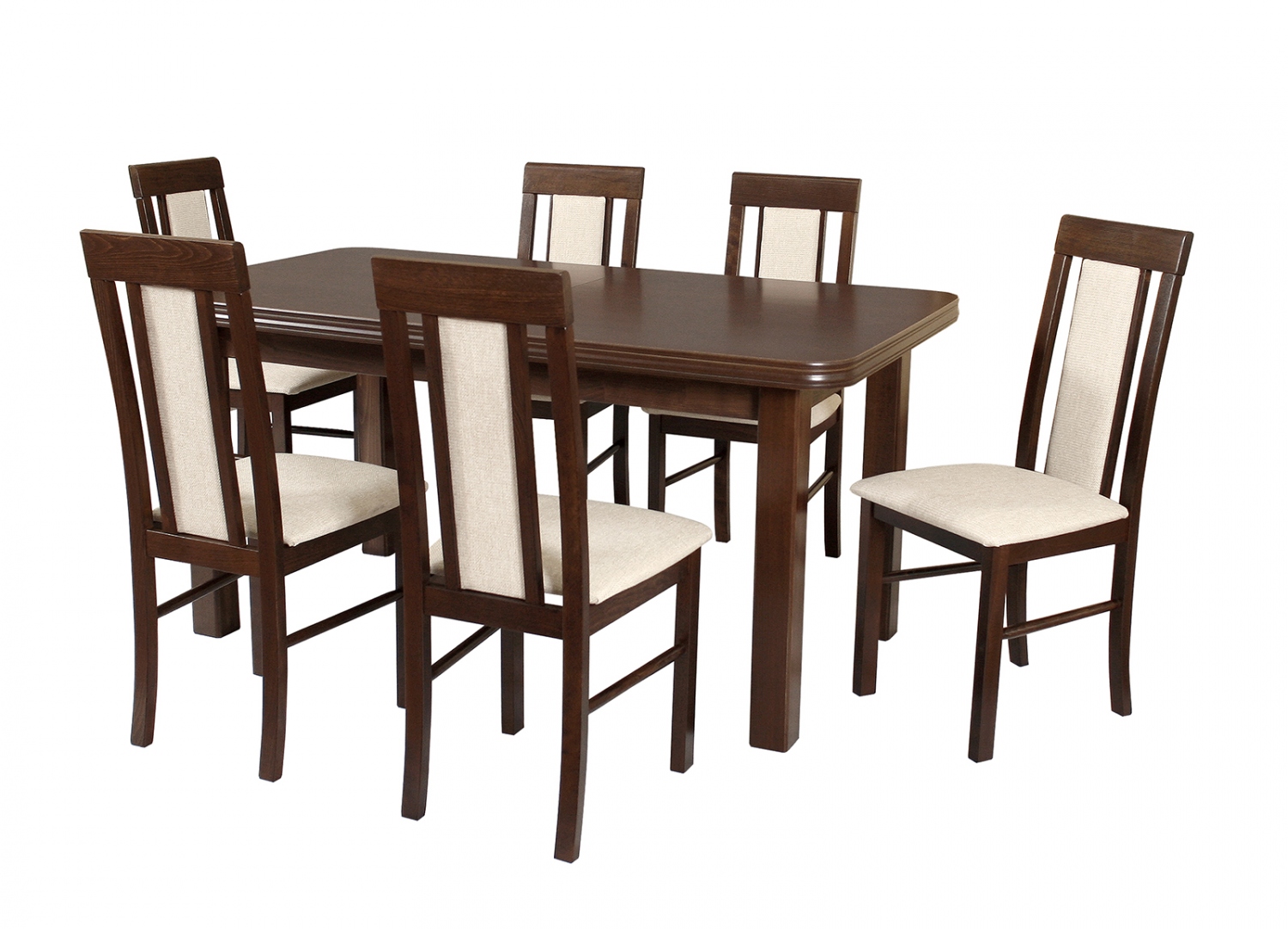 Jídelní sestava Blahoslav vnese do vaší kuchyně nebo jídelny příjemný nádech elegance. Skládá se ze šesti židlí a jídelního rozkládacího stolu, který má při rozložení rozměry 200 x 90 cm. Nábytek je vyroben z masivu buku, deska jídelního stolu je v provedení dýha. Povrch nábytku je ošetřen několika vrstvami ekologicky nezávadného laku, který snižuje riziko oděru.