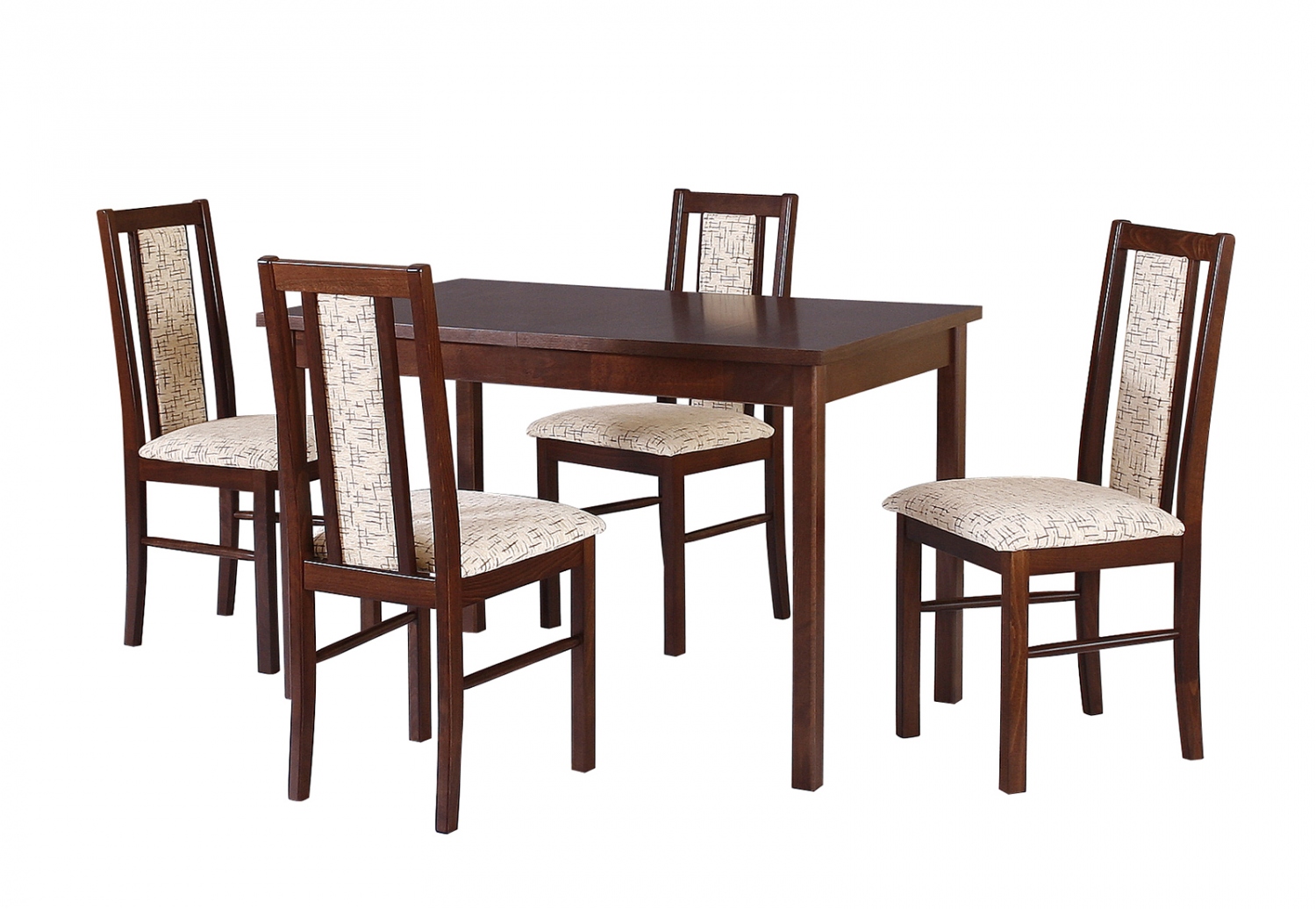 Jídelní set Radovan pro 4 osoby je moderním nábytkem s elegantním designem. Na výrobu bylo použito tvrdé a velmi odolné bukové dřevo. Tento materiál je zárukou potřebné stability, nosnosti a dlouhé životnosti.