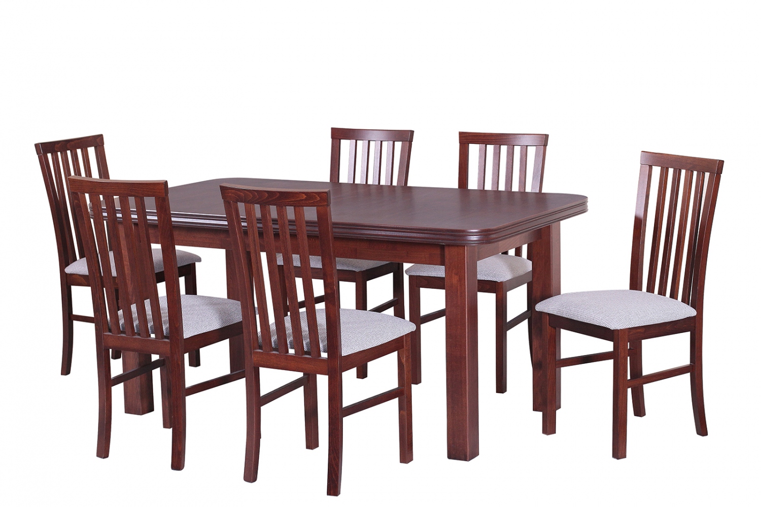 V jednoduchosti je krása, tak by mohlo znít heslo pro tuto jídelní sestavu Terenc. Stůl i židle jsou vyrobeny z kvalitního masivu buku, což svědčí o jeho odolnosti a stabilitě. Jestli často hostíte na obědy či večeře celou rodinu, pak je pro vás tento set ideální. Stůl je rozkládací na délku 200 cm. A aby se u vás rodině příjemně sedělo, tak jsou židle polstrované.