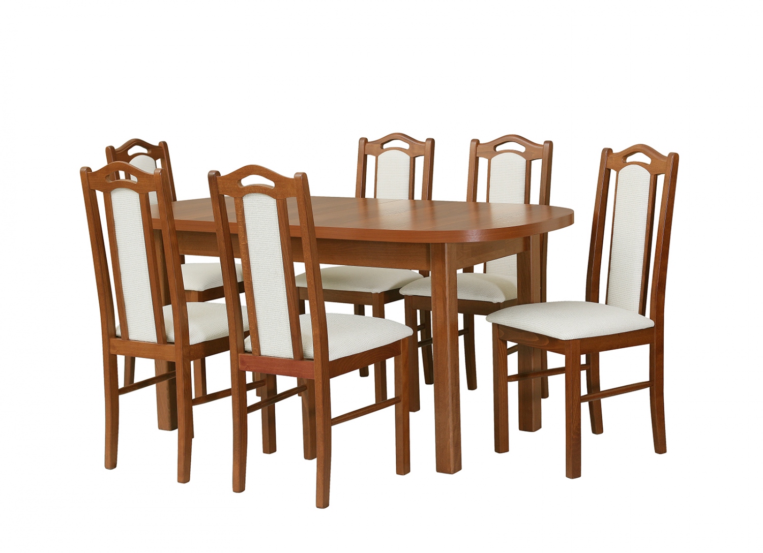 I z jídelny na vás může dýchat příroda. Pořiďte si jídelní set pro 6 osob Romeo, který je vyroben z masivu buku. Ten navodí příjemnou atmosféru pro chvíle strávené s rodinou a přáteli. Pro komfortní sezení jsou židle opatřeny polstrováním, které si můžete zvolit dle našeho vzorníku.