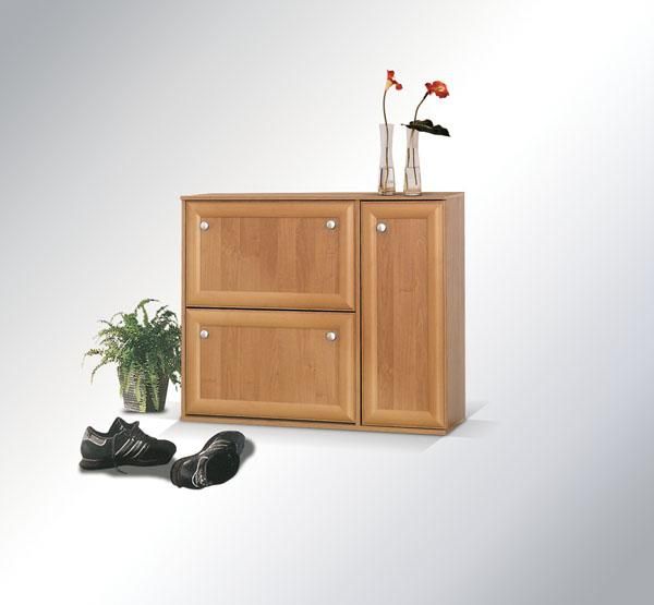 Kombinovaný botník s výklopným úložným prostorem. Boční část je vyhrazena úzké skříňce se dvěma policemi, kde uschováte drobné svršky, deštníky apod. Botník je vyroben kompletně z velice oblíbeného lamina, které vyniká mnoha výhodami. Ozdobné rámy na dvířkách jsou příjemným doplňkem. Decentní ručky v barvě aluminia umožní snadný přístup k uložené obuvi. Na výběr jsou tři barevná provedení od světlého až po tmavý ořech. Všechny tyto barevné odstíny jsou laděny do přírodních tónů s líbivým dekorem dřeva.