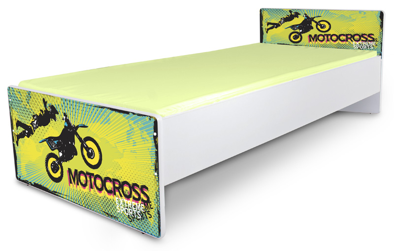 Je Váš potomek příznivcem motokrosového sportu, hltající triky jezdců náročné motokrosové trati? Dopřejte mu možnost usínat v posteli, která odráží jeho zálibu, a zároveň se stane velmi originálním prvkem dětského klučičího pokoje. Bílý korpus umožňuje postel zkombinovat s jakýmkoliv moderním bílým nábytkem.