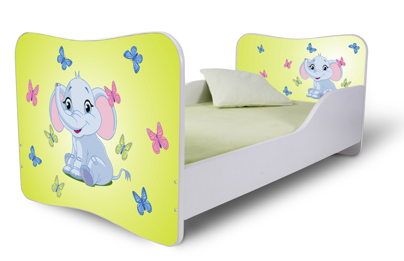 Máte malé dítě a chtěli byste mu vybavit dětský pokojík v pestrých barvách? Jednolůžková postel Sloník s barevnými čely a roztomilým slůnětem udělá radost mnoha dětem. Zaoblené tvary dodávají posteli příjemný vzhled a nepůsobí tak stroze. Postel je vyráběna v několika velikostech ložné plochy a dokoupit je možno i výsuvný šuplík pod postel.