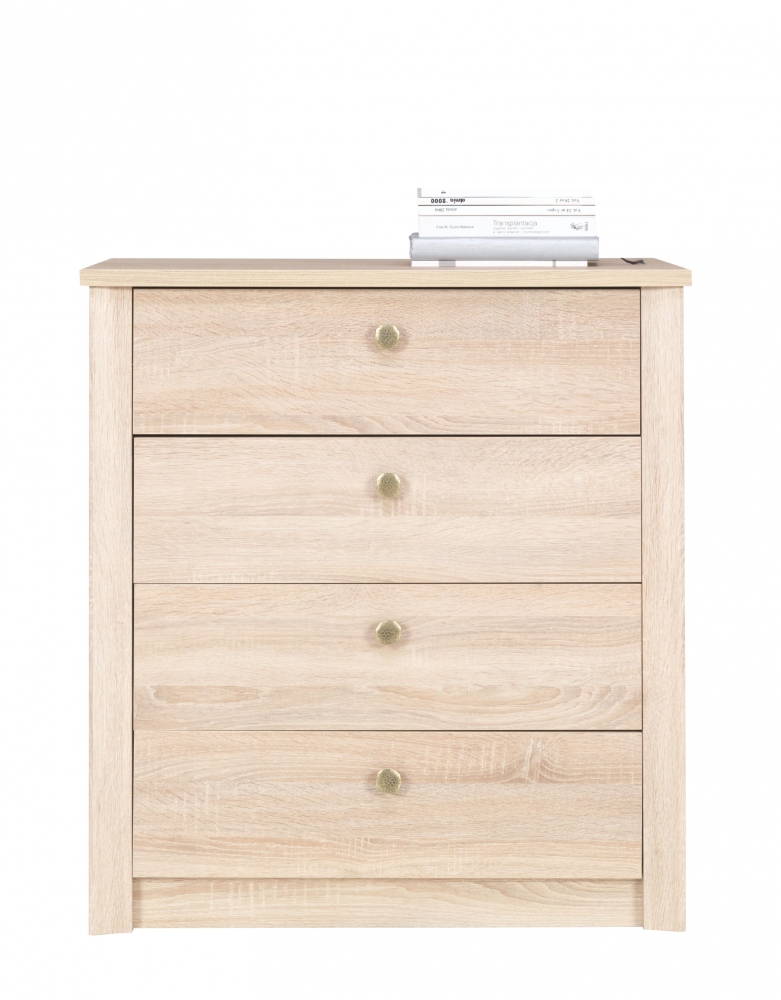 Většinu věcí k ukládání tvoří oděvy a prádlo. To znamená, že bez komod se ve své domácnosti neobejdeme. Dostatečný úložný prostor v podobě čtyř zásuvek poskytuje také komoda z odolného lamina, díky jejíž optimální výšce můžete využít k umístění dekorací také horní desku.
