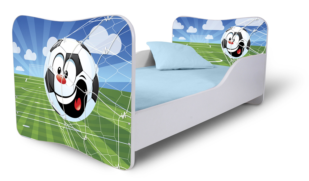 Vysmátá postel pro vysmáté děti. Pořiďte ji vašim ratolestem do dětského pokoje. Krásný barevný motiv fotbalového míče rozzáří každý pokoj. Díky neutrálnímu bílému korpusu můžete k posteli jednoduše doladit zbytek pokoje.