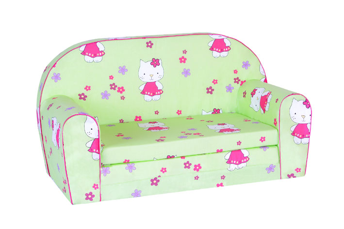 Rozkošná dětská pohovka s motivem roztomilé kočičky potěší všechny holčičky! Nabízíme ji ve svěžím zeleném, neutrálním krémovém a něžném růžovém odstínu. Vaše malá princezna ji může využít při sledování pohádek, odpočinku, ale také při hraní s kamarády. Sedačka je rozkládací, takže ji můžete snadno proměnit také v lůžko o rozměrech 98 x 58 cm. Pohovka nemá žádné pevné (dřevěné) části. Při své váze 1,8 kg je natolik lehká, že si ji dítě zvládne samo rozložit, složit nebo kamkoliv přemístit.