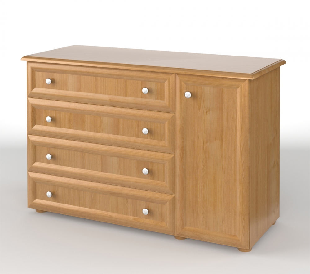 Kvalitní použitý materiál je odolný vůči odření i jinému mechanickému poškození. Hladká plocha lamina se velmi snadno zbavuje prachu a jiných nečistot. Komoda je v nabídce ve třech provedeních s dekorem dřeva.