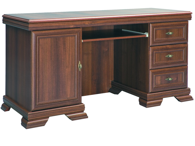 O tom, že se při navrhování stolu pamatovalo rovněž na možnost využívání moderní techniky, svědčí výsuvná deska na klávesnici, díky níž jej budete moci používat také jako PC stůl. Praktický úložný prostor, který zajistí, aby všechny psací a ostatní kancelářské potřeby byly vždy přehledně na svém místě, má podobu 3 šuplíků a skříňky vybavené policí.