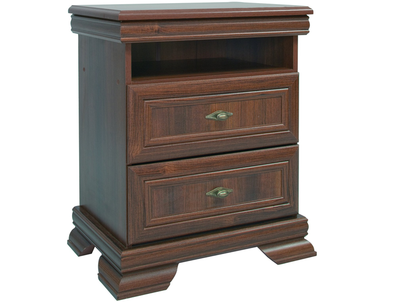 Stejně jako ostatní nábytek z kolekce Gladys je i noční stolek inspirován nábytkem 19. století. Vyřezávané prvky, ozdobné úchyty a dezén masivního dřeva se skvěle hodí do interiéru, kterému vládnou staré knihy, ručně malované obrazy, zrcadla v barokních rámech a úlovky ze starožitnictví.