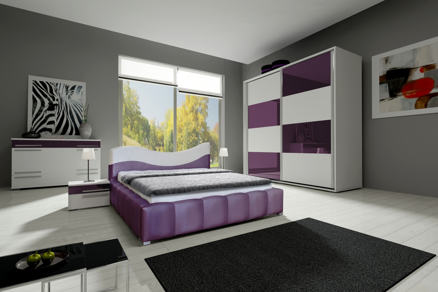 Praktickým doplňkem postele jsou noční stolky se 2 zásuvkami, do nichž se vejdou všechny potřebné drobnosti, které chcete mít v době před usnutím pohodlně po ruce. Šatní skříň s posuvnými dveřmi, dostupná ve 2 rozměrech šířky, je spolu s originálně řešenou komodou připravena pojmout veškeré vaše oblečení.