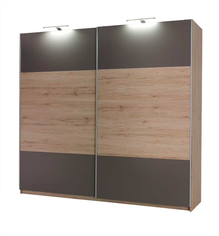 Posuvné dveře zaberou mnohem méně místa než klasické dveře s panty, díky čemuž je skříň vhodná i pro umístění do menších interiérů. Barevné provedení laděné do přírodních odstínů působí příjemně uklidňujícím dojmem, což umožňuje zakomponování skříně také do ložnice.