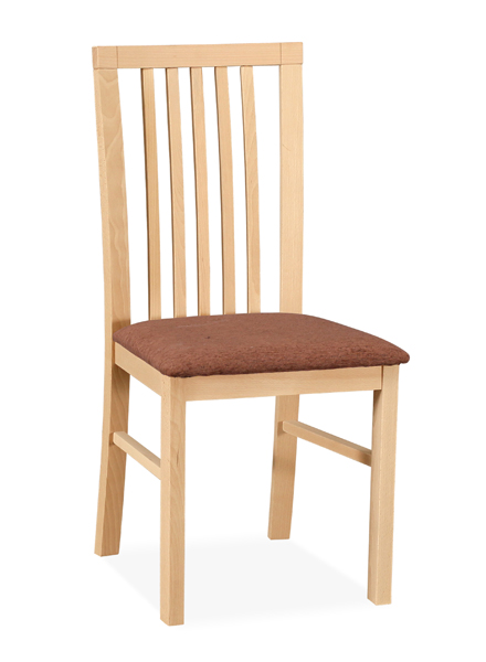 Opěrná část je odlehčena vertikálním členěním, jehož vzdušnost ocení majitelé menších kuchyní či jídelen. Sedadlo je opatřeno komfortním polstrem, jenž zajistí velmi pohodlné posezení i v případě, že rádi spočinete u stolu i po skončení obědu či večeře. Jeho vzhled pak snadno přizpůsobíte svému vkusu volbou vhodného odstínu potahové látky. Nabízíme více odstínů jak jednobarevných, tak i vkusně dekorovaných drobným vzorkem. Neutrální i výraznější barvy naleznete i ve vzorníku potahové ekokůže. Oba materiály pak doladíte mořením masivní bukové konstrukce, jež propůjčí komponentu stabilitu a dlouhou životnost. Odolnosti kostry je docíleno rovněž několika vrstvami ekologického ochranného laku.