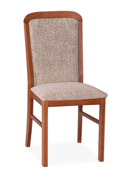 Měkký a dostatečně vysoký polstr sedadla zajistí, že se od rodinného obědu či večeře budete zvedat jen s velkou nevolí. Sedák je přitom přímo napojen na stejně pohodlné opěradlo, jež je vyměkčeno stejným potahovým materiálem. Židle díky absenci nepohodlných členících prvků a převaze čalouněných ploch působí kompaktním, uhlazeným dojmem, jenž harmonicky doplní interiér útulného stolovacího místa. Můžete se inspirovat ilustračním vyobrazením a zvolit kombinaci odstínu moření i čalounění v přírodních hřejivých tónech. Chcete-li však tradiční univerzální vzhled židle ozvláštnit drobným vzorkem, v nabídce naleznete též decentně dekorované potahy. Kromě běžně užívané tkaniny si lze nechat židli přečalounit i ekokůží, kterou ocení zejména maminky, neboť ji lze snadno zbavit případných skvrn od jídla. O bezpečnou stabilitu sezení se postará masivní konstrukce, jež je pro zvýšení odolnosti pokryta několika vrstvami nezávadného laku.