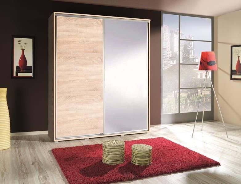 Vnitřní uspořádání je rozděleno na policovou část a na prostor s horní policí a klasickou šatní tyčí. Můžete tak vaše šatstvo ukládat, podle vašich potřeb, buď poskládané nebo zavěšené na ramínka. Přes jedny celé dveře je umístěno velké zrcadlo, které poslouží pro vaši úpravu, ale které také prosvětlí váš pokoj.