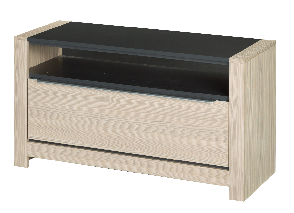 Díky jeho menším rozměrům je vhodný i do interiérů kde není prostoru nazbyt. Poskytuje prostor na horní desce pro umístění televizoru, ale také otevřenou polici na elektroniku a výsuvný šuplík na CD a DVD nosiče nebo časopisy. Šuplík je vybaven systémem Quadro s tichým dovíráním. Podlouhlá úchytka pro snadné otevírání šuplíku je kovová.