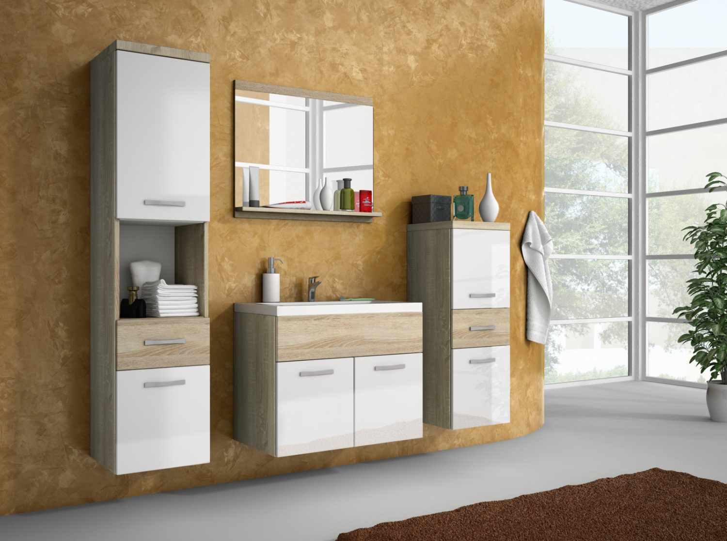 Nábytek do koupelny Horace 1 - dub sonoma / bílý lesk
