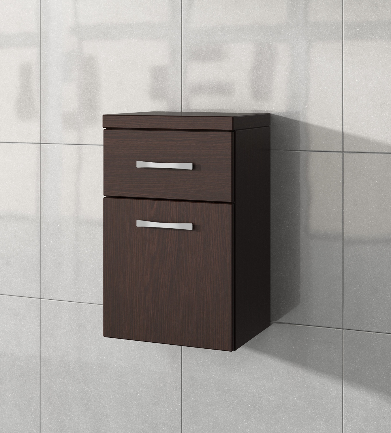 Laminované dřevotřískové desky, z nichž je skříňka vyrobena, jsou odolné s barevnou i tvarovou stálostí. Snadno se čistí suchým nebo navlhčeným hadříkem. Barevné provedení wenge je elegantní se vzorem napodobující strukturu dřeva. Chcete-li další podobné vybavení do vaší koupelny, podívejte se na naši nabídku.