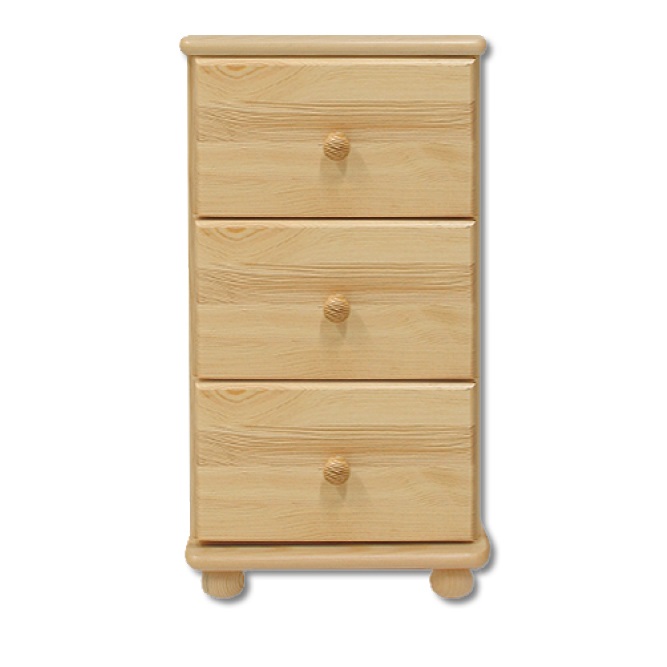 K uložení brýlí, knihy nebo jiných drobností, které chcete mít u postele po ruce, poslouží tři malé šuplíky. Využít však můžete také horní desku stolku k postavení lampičky nebo nápoje. Dlouhou životnost stolku zaručí pevný borovicový masiv použitý na výrobu. Ten je pro vyšší odolnost nalakován bezbarvým ochranným lakem.