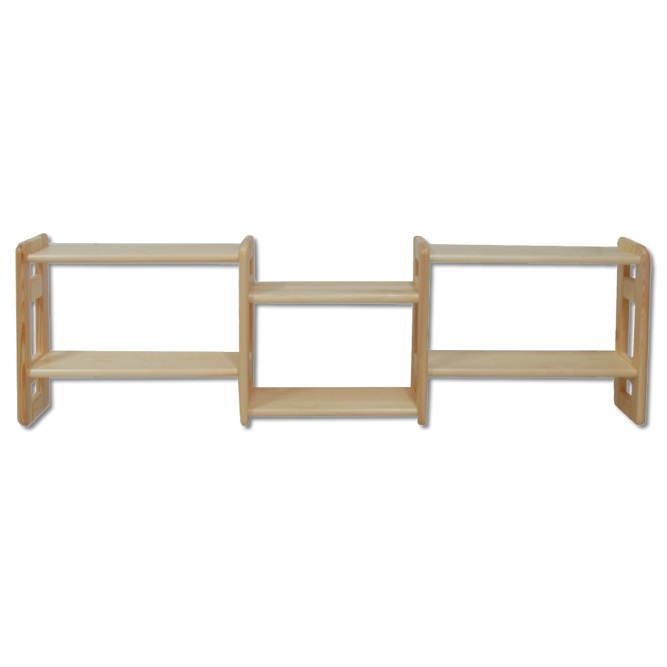Polička je vyrobena z výběrového masivu borovice, aby byl produkt dostatečně pevný, odolný a měl také odpovídající nosnost. Povrch dřeva je pro vyšší odolnost vůči odřeninám přelakován ochranným bezbarvým lakem. Vyberte si z pěti možností požadovanou šířku přesně pro prostor určený na novou polici.