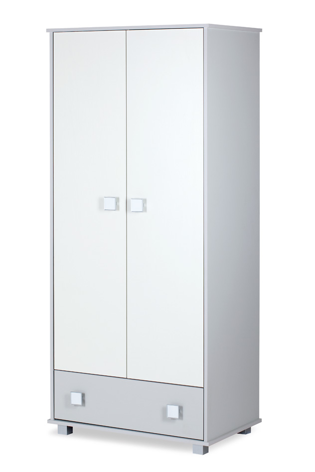 Hledáte praktický úložný prostor, který se bude hezky vyjímat v pokoji vašeho dítěte? Šatní skříň Alida vám to splní. Kombinace bílé s šedou barvou a ozdobné čtvercové úchyty na dveřích a šuplíku působí elegantně a dávají skříni moderní vzhled. Vnitřní prostor je kombinací klasické šatní tyče a policového systému.