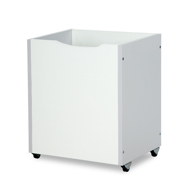 Box je vyroben z dřevovláknitých desek, a tudíž je pevný a jeho povrch je velmi odolný proti mechanickému opotřebení. Tento materiál je antialergenní a tedy bezpečný pro děti. Snadnou manipulaci umožňují čtyři kolečka, na kterých se i plný box může přesunout na jiné místo.
