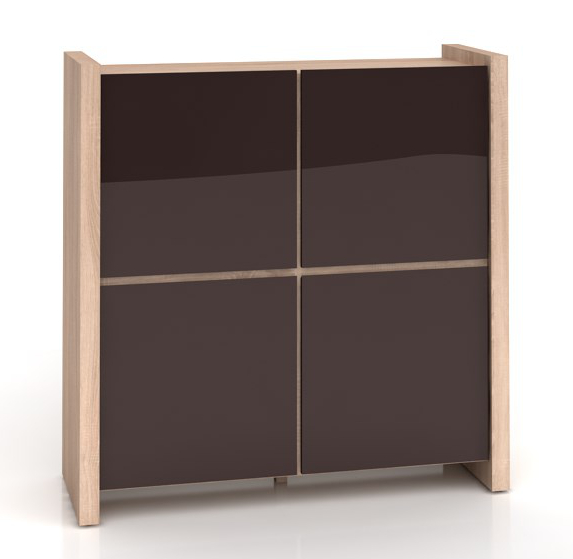 Vlastnosti:• Moderní skříňka Regiana v barevné kombinaci dub sonoma / černo - hnědý lesk. • Skříňka je rozdělena na 4 části dělícími stěnami. Každá část obsahuje 1 polici. • Je vybavena kvalitními kováním s tichým dojezdem. • Snadná montáž.