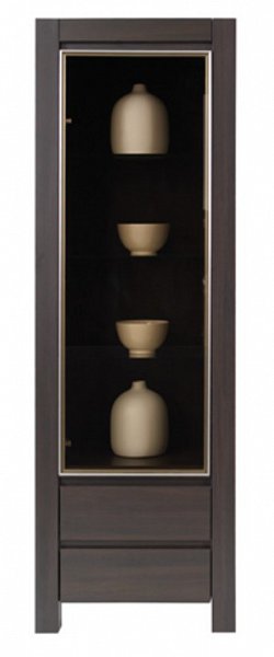 Pokud se vám líbí sytě hnědý dekor wenge, zbystřete. Skleněnou výplň dvířek zdobí nerezový lem a celý dojem podtrhuje absence úchytů. Dvířka i 2 šuplíky si pohodlně otevřete pomocí tvarování jejich čelních částí. Uvnitř najdete 3 police z tvrzeného skla v hnědých tónech. Díky výrobě z odolného lamina s údržbou nemusíte ztrácet čas. Raději vyrazte na nová dobrodružství.