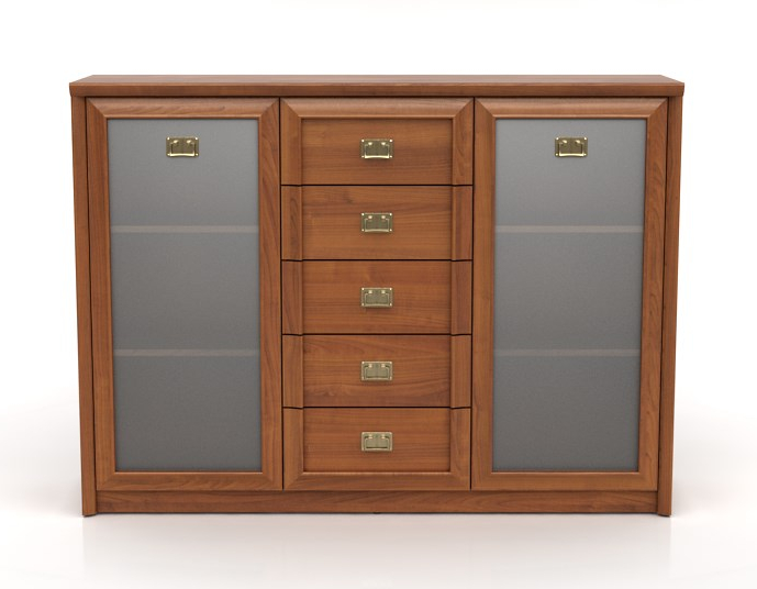 Dodejte své domácnosti styl a získejte navíc i další úložný prostor. Jak? S kombinovanou komodou Frez 6. Dvě skříňky jsou opatřeny dvířky z mléčného skla, za nimi se nacházejí 2 police. Středovou část tvoří 5 šuplíků na válečkových kolejničkách.