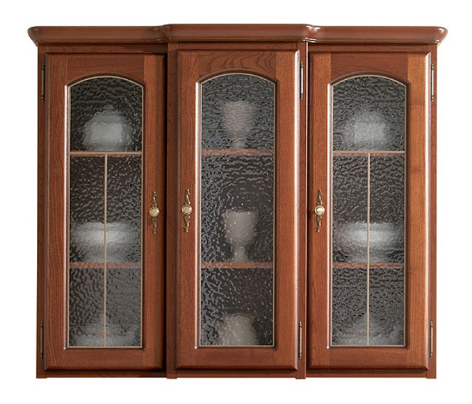 Dekorační prvky - hluboké výřezy v masivních dvířkách, patinovaná mosaz úchytů, ozdobné sklo ve vitrínách, oblé tvary vrchních desek, říms, soklů a nožek - tvoří klasický charakter nábytku, který plní tradiční funkci. 31 prvků v barevném provedení "ořech italský" (dvířka) a kaštan (korpus).