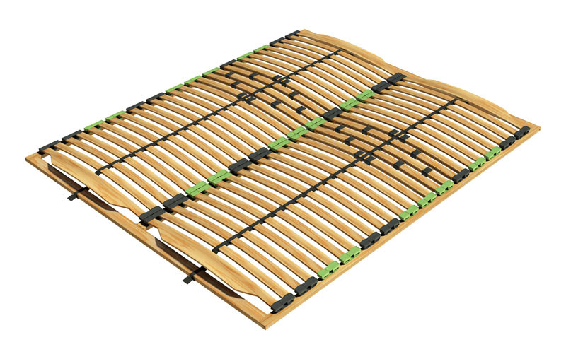 Rošt se skládá z 2 x 28 břízových vrstvených lamel vložených do flexibilních pouzder.