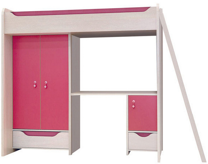 Ve spodní části naleznete dvoudveřovou skříň s šatní tyčí a šuplíkem na drobné kousky oblečení. Vedle ní budou mít vaše děti k dispozici psací stůl pro domácí úkoly i záliby. Jeho úložný prostor tvoří skříňka a praktická zásuvka.