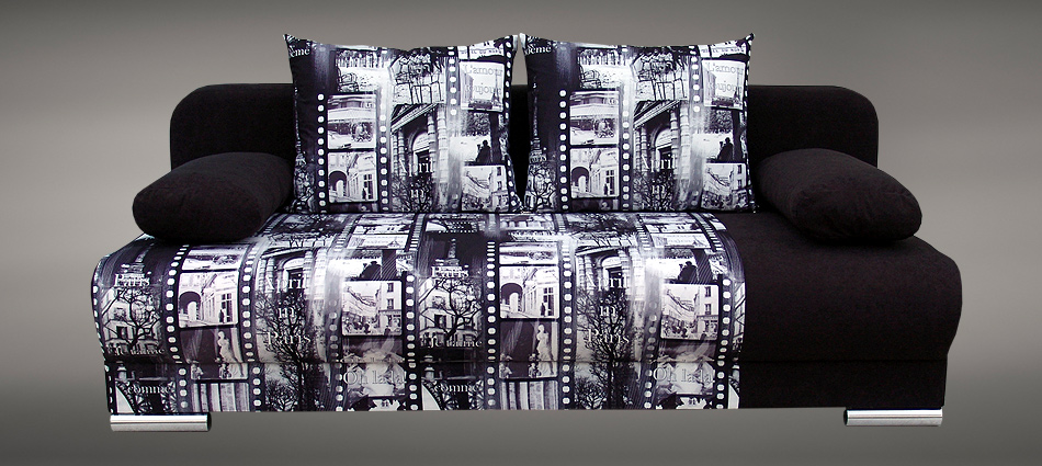 Na výběr máte 2 varianty potahových látek s trendy motivy - film nebo internet. Zbytek pohovky pro filmové fanoušky je černý, zatímco internetový motiv je doplněný červenou barvou. Součástí jsou také široké nožky, které oceníte při přemisťování nového nábytku.