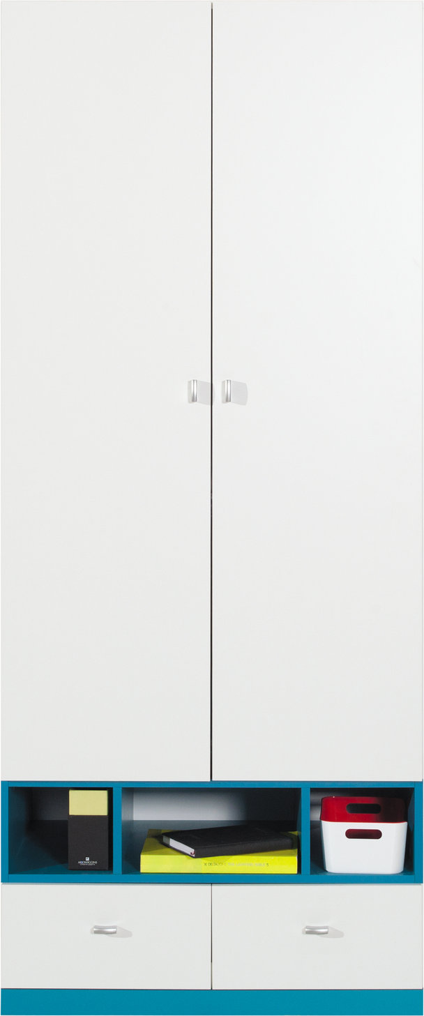 Hledáte inspiraci pro zařízení pokojíčku vaší ratolesti? Nalézt ji můžete například v dětské nábytkové kolekci Poly, která představuje komponenty, jimž nechybí účelnost ani hravý design. Přesvědčí vás o tom také vyobrazená 2-dveřová šatní skříň, jejíž prakticky navržený úložný prostor má podobu horní části vybavené policí a šatní tyčí, 3 přihrádek a 2 výsuvných šuplíků.