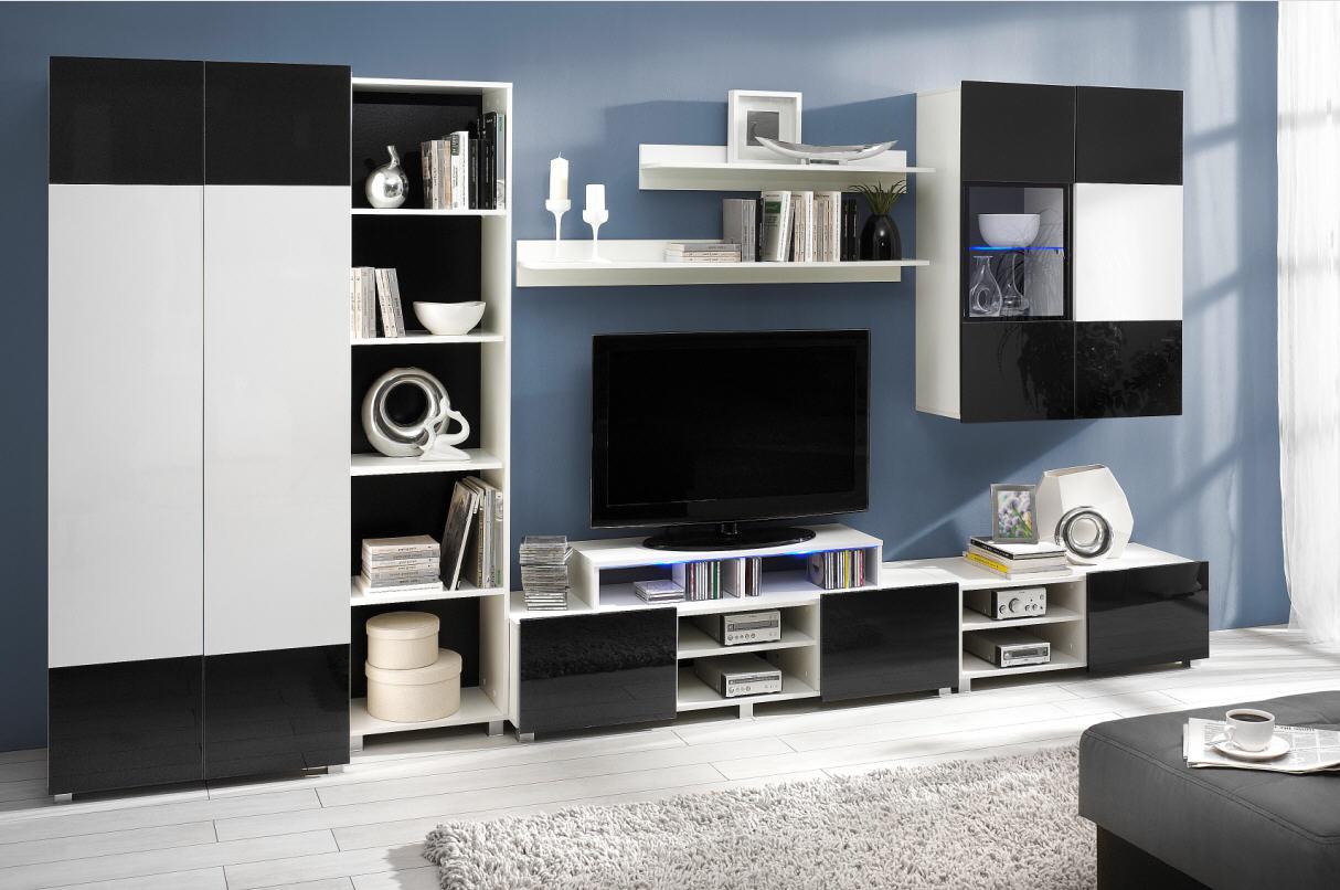 Černobílá obývací stěna Dangelo 8 s vybranými praktickými komponenty poskytne mnoho úložného místa. Dvoubarevný design je více atraktivní a žádoucí, přední panely navíc mohou být v lesklé či matné variantě, i tuto možnost výrobce nabízí. Několik barevných kombinací je uvedeno ve vzorníku u produktu. Závěsná skříňka a přídavný nástavec jsou opatřeny LED diodami, ty dodají sestavě moderní vzhled. Síla lamina je 16 mm. Hrany nábytku jsou vyztuženy ABS lištami.Komponenty lze libovolně kombinovat a rozmisťovat. Pokud by úložný prostor nestačil, lze dokoupit další díly ve stejném barevném i designovém provedení.